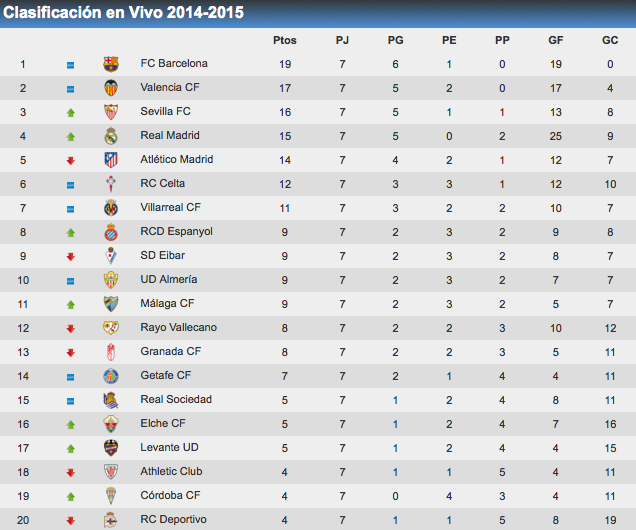 In the rest of the games, there were some 1,000 empty seats (about a fifth of the stadium) for the riproaring 3-3 draw between Eibar and Levante which the home team levelled in the very last minute through the endeavour of Federico Piovaccari after conceding in just the second minute. In pissing down conditions, the game also saw clearly the best goal of the weekend and an early contender for goal of the season, Saúl smashing home on the volley from the edge of the area after being teed up from a free kick. Staying in the north, Celta Vigo had the first loss of the season imposed on them by Villarreal at Balaídos, Moi Gómez scoring two in two first half minutes just after the half hour. Vigo pulled one back through Joaquín Larrivey but had Andreu Fontas sent off before Mario wrapped the game up with a tap-in in injury time. The only thing to note from the 2-2 draw between Almería and Elche was the awful decision-making on show; from the defenders, the goalkeepers and the ref. Really, 'twas quite amateur.